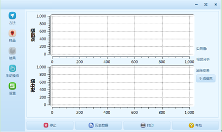 上圖顯示的是“測(cè)定值”曲線,下圖顯示的是測(cè)定值的一階“微分值”曲線。根據(jù)之前設(shè)置的方法自動(dòng)進(jìn)行數(shù)據(jù)采集和微分計(jì)算。