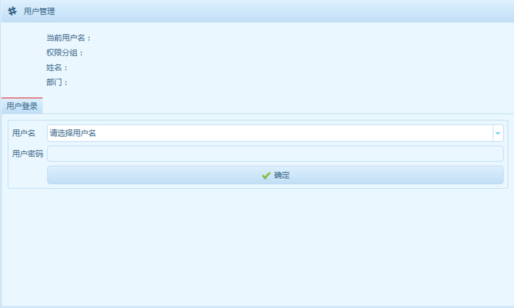 選擇自己的用戶名,并輸入密碼,點(diǎn)擊“確定”后就可進(jìn)入,首次可以由默認(rèn)的管理員賬戶進(jìn)入,之后可以由管理員分配操作人員的用戶名和權(quán)限。