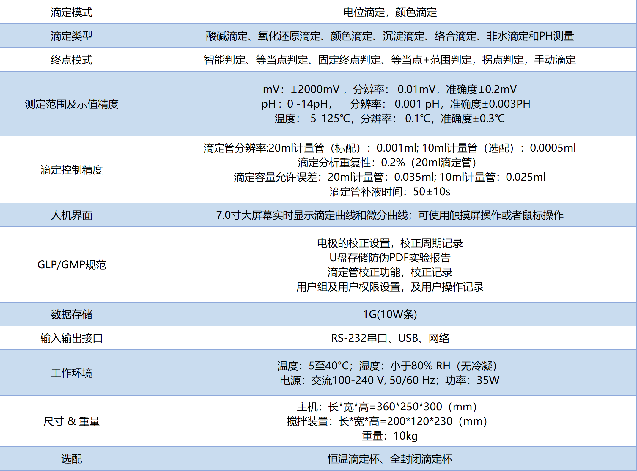 CT-1PLUS多功能全自動(dòng)滴定儀是具備顏色滴定和自動(dòng)電位滴定功能于一體的新一代滴定儀,儀器采用模塊化設(shè)計(jì),由高精度計(jì)量管滴定裝置、控制裝置和檢測(cè)裝置三部分組成,除了進(jìn)行常規(guī)的電位滴定如PH酸堿滴定、氧化還原滴定、沉淀滴定和絡(luò)合滴定外,還可以進(jìn)行通過(guò)顏色判斷終點(diǎn)的傳統(tǒng)滴定。儀器可以自動(dòng)判斷終點(diǎn),可實(shí)現(xiàn)固定終點(diǎn)滴定、動(dòng)態(tài)滴定、組合交叉滴定和手動(dòng)滴定功能。支持自動(dòng)停止檢測(cè)和手動(dòng)停止檢測(cè),關(guān)鍵滴定組件具備緊急停止保護(hù)功能。