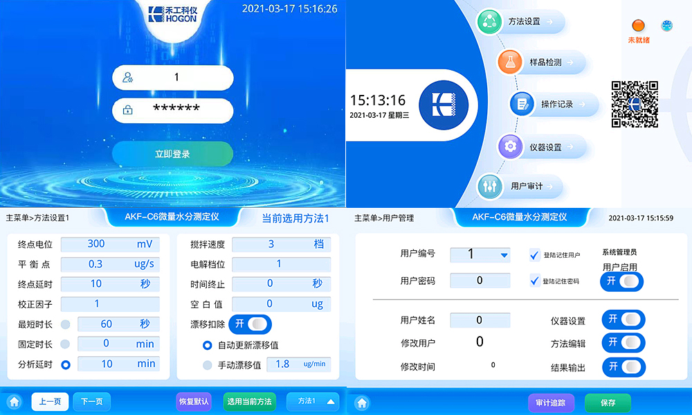 AKF-C6是上海禾工科學(xué)儀器公司在保持原有AKF-C6全自動(dòng)微量水分測(cè)定儀優(yōu)越的性能上面,應(yīng)對(duì)2020新版《中國(guó)藥典》對(duì)于卡爾費(fèi)休水分測(cè)定儀的要求,在儀器軟件上新開發(fā)了符合GMP認(rèn)證需要的軟件功能,適合制藥、第三方檢測(cè)、質(zhì)量技術(shù)監(jiān)督部門對(duì)高端庫倫法卡爾費(fèi)休水分測(cè)定儀的使用需求。